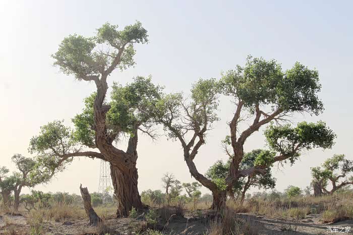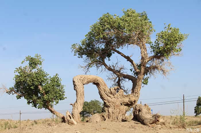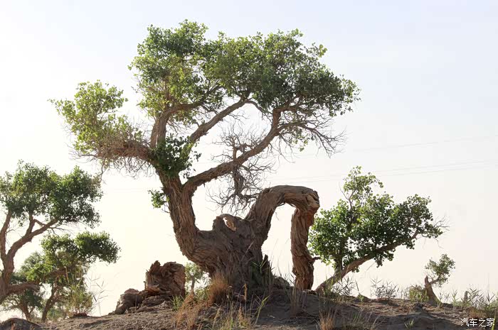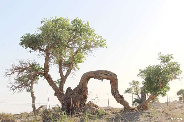 胡杨树顽强的在这片沙漠中生存,它们那千奇百怪的身姿,在茫茫的沙漠中是那么的显眼,不由我们不为它点赞!
