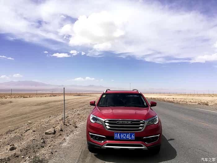 来往的车辆极少,小捷孤身只影的在沙漠公路旁等候着我们,它玫瑰红的身影在公路上显得很靓丽,这一路上小捷也很给力,不由我不为国产车点个赞!
