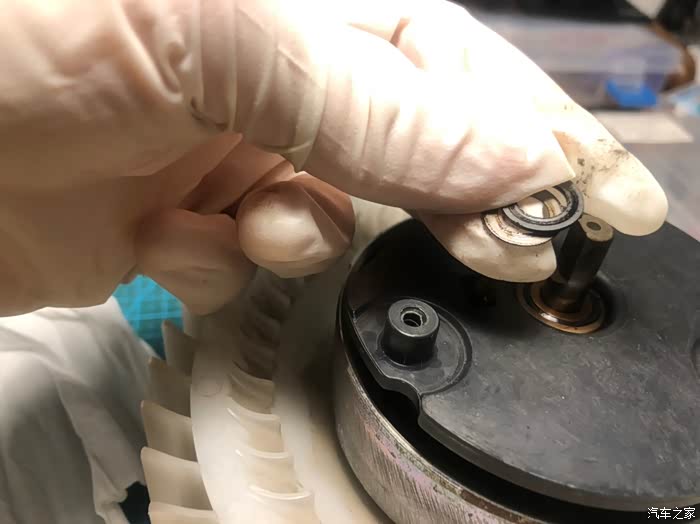 这个要和中轴分开需要点力气。拿出来清理再上油回装。