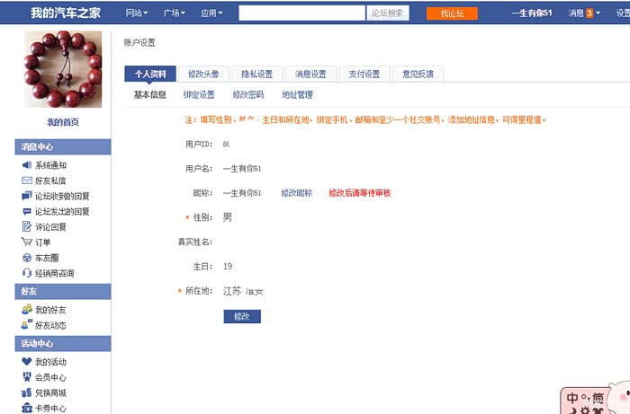 汽车厂家车主论坛的会员资料中的爱车信息。
