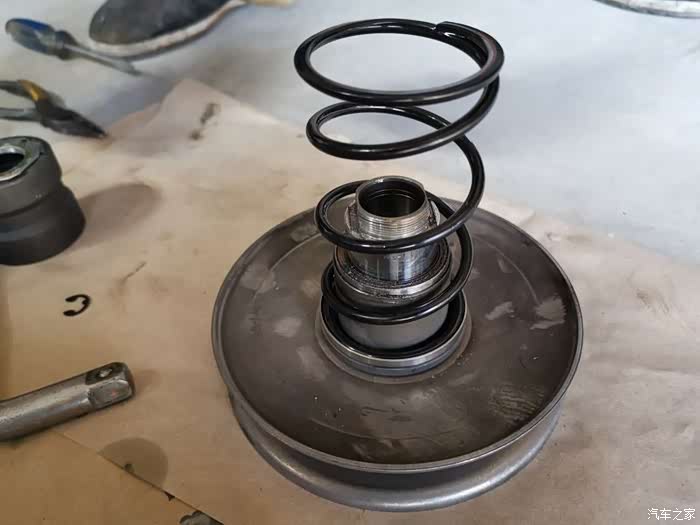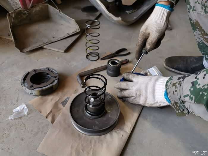然后就是传动改装,这个车因为出来时间不长,车友改装的不多,翻遍了网络,大家反一家店铺不错,用了店铺中三百元的大小弹簧、、普利珠和扭力加速套件,说效果还行。移步店铺,咨询老板,老板推荐更高一级的套装,包括普利盘、普利珠、离合器、碗公、大小弹簧、扭力加速,听了以后,一直在犹豫,是否有必要,后来开始看老板的改装视频,了解踏板传动的基本原理,各部件的作用,考虑了好久,为了避免自己以后后悔,咬牙上了全套改装,除了皮带和开闭盘,传动所有部件全部换改装件。