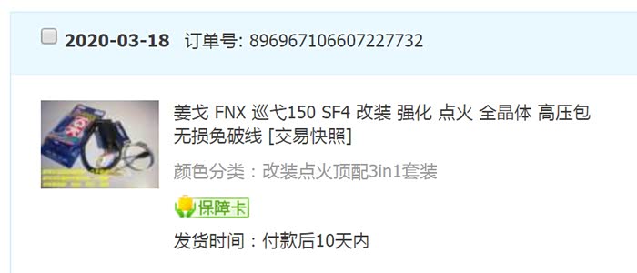回来后,和改装店铺掌柜聊天,说传动效果不错,问电喷车提高性能除了该传动,是否还有别的改装项目?掌柜的说:电喷车改了传动后,剩下的就是改一套点火系统,让发动机出力更加稳定,终极改装就是改缸和外挂电脑了。头脑一热,立刻下定一套点火系统,这个到货安装后再给大家反馈实际使用效果。