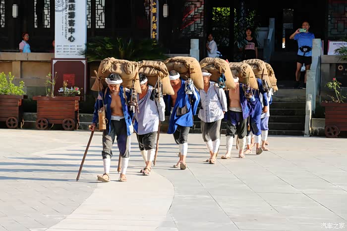 除了背盐工的队伍还有舞水龙等好几个表演,游船的旅游团队都很开心的看节目。