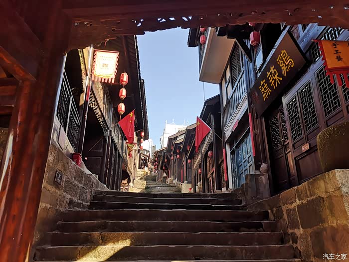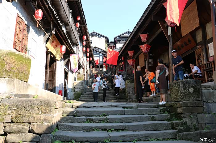 穿过西沱古镇门口的限宽桩,进来好不容易找到一个距离云梯街很近的免费划线车位。