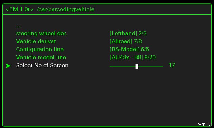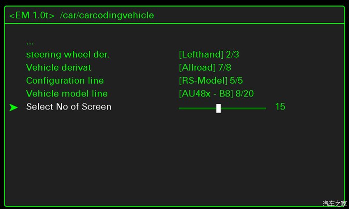 隐藏菜单car/carcodingvehicle/Select No ofScreen, Select No of Screen改成。。。