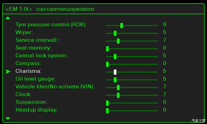car——carmenuoperation——选择Charisma并把后面的数字由0改成5(5是在行驶中也可进行操作)