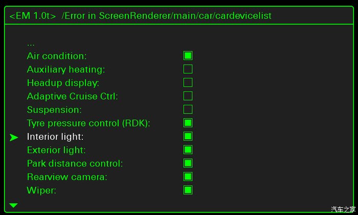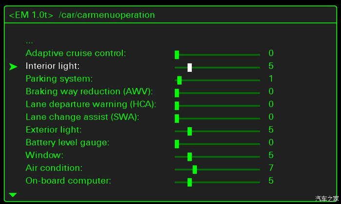 back键后退,找到carextdevicelist,找到Interior light,勾选上。