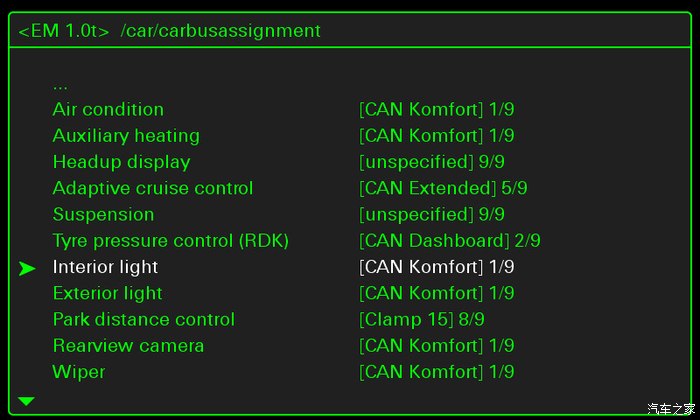 之后按back键后退,找到carbusassignment,找到Interior light,改成1/9。