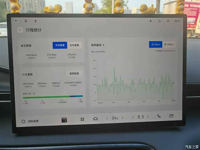 这个是慢充充满开了272公里,剩余里程96公里(实际还要打7折)。