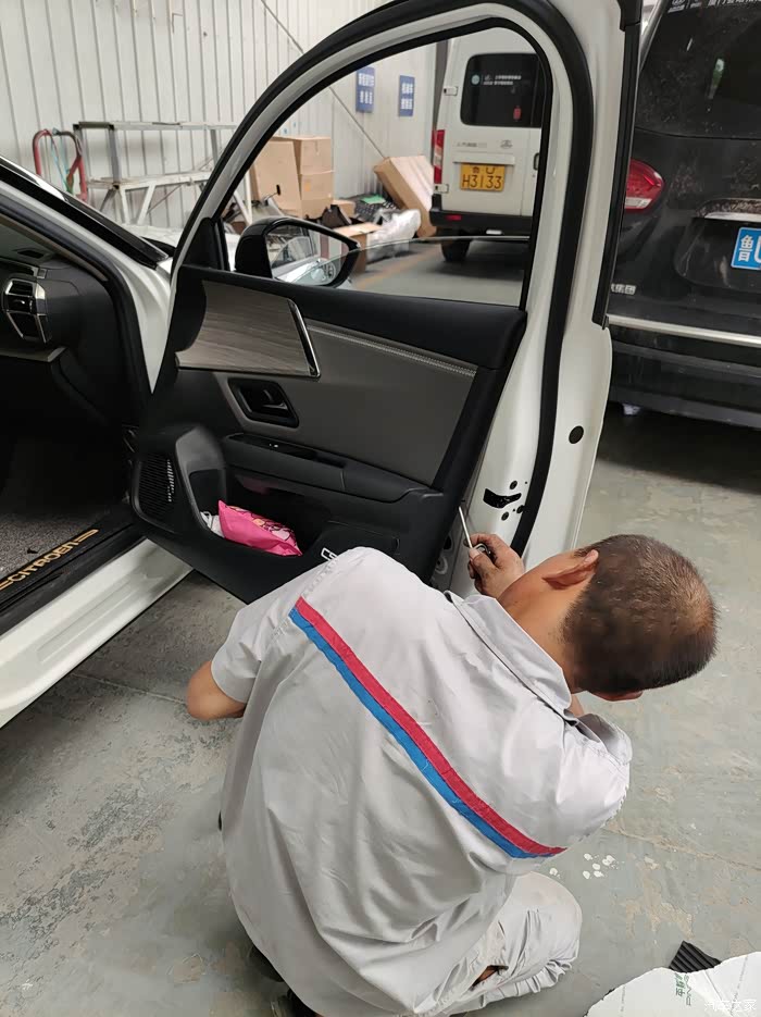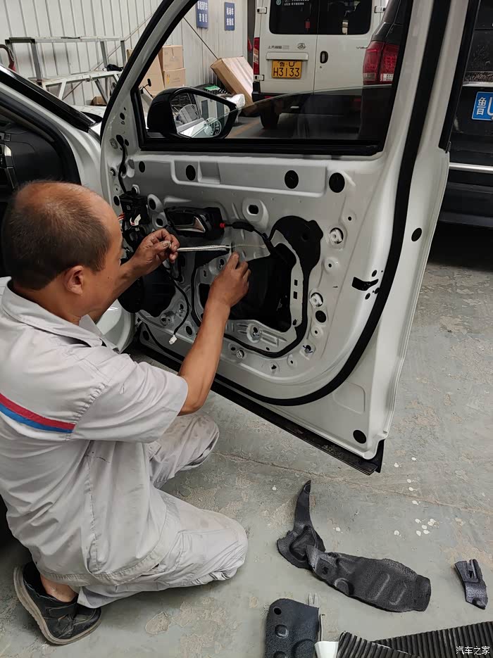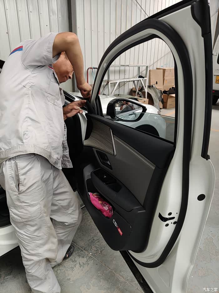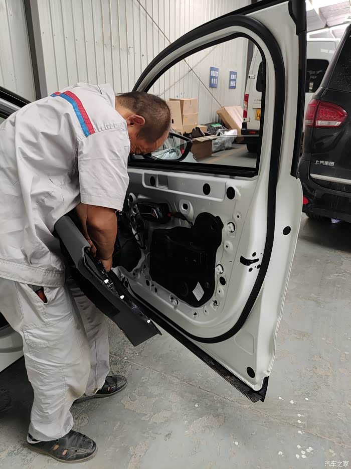 感谢厂家给的配套升级政策,让本已配置齐全的凡尔赛更上一个台阶。今天终于有时间到店升级双层夹胶玻璃。料定周末业务繁忙,赶在上班前到达当地服务最周到的福航。洗车后开到钣金车间,老师傅立马接车施工(为了方便操作已提前把自备的3m膜送到4s,让师傅给贴好了),拆门板,拆密封层,卸玻璃,装玻璃,密封,装门板,没有有任何多余动作,一气呵成,干脆利落,左右门半个多小时搞定,中间还给加做了一下车门隔音(材料自备),老师傅就是老师傅。一点建议给大家,拆门板等有卡扣的地方最好夏天施工,夏天天热,塑料件好拆不容易损坏