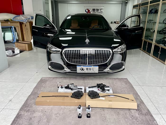迈巴赫S480升级原厂电动后门,需要的全部配件主要包含高配锁机、驱动电机、模块、开关按键等等。
