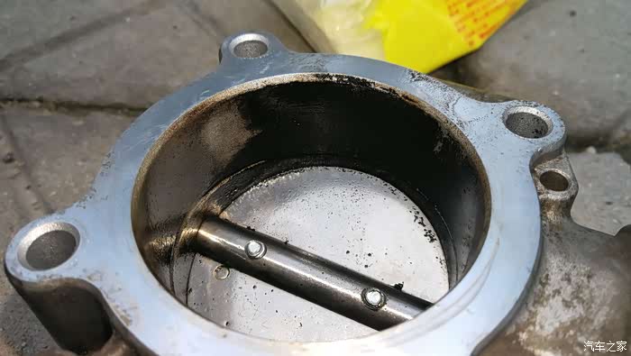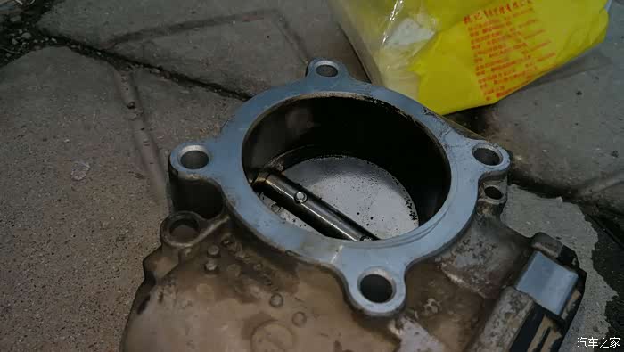 拆下来的节气门很脏,天快黑了 ,有点看不清。