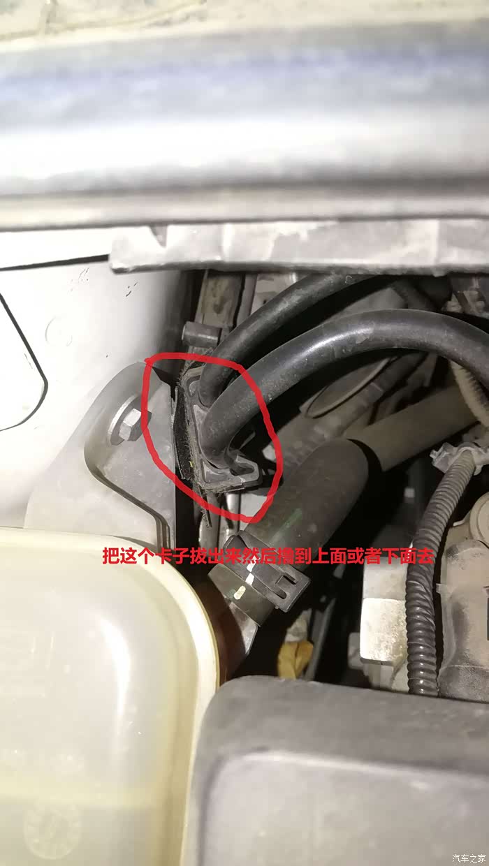 然后就是取出机滤,把这两根油管从卡子上拿掉,很简单;