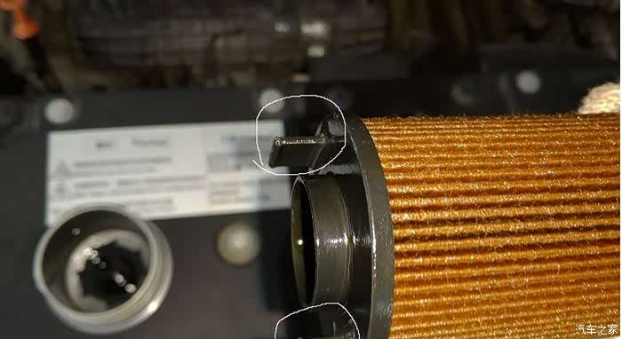 或者是机滤盖的卡子,要与机滤对应,这个卡子比较松,更换新机滤的装回的时候一定不要把滤芯碰歪,否则拧不上机滤盖。