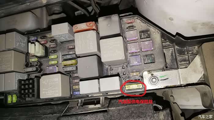 2..将车辆点火,然后打开发动机盖,在发动机舱的保险丝盒内将油泵的保险丝断掉;然后等待发动机自动熄火。