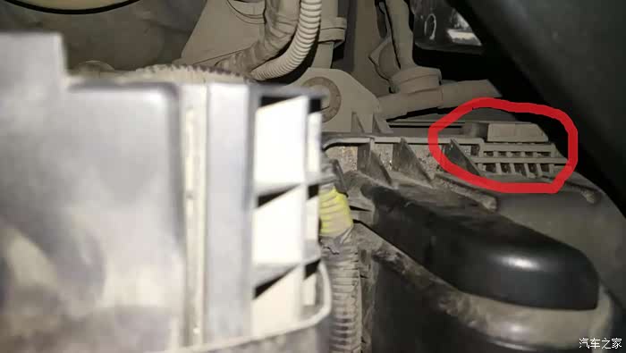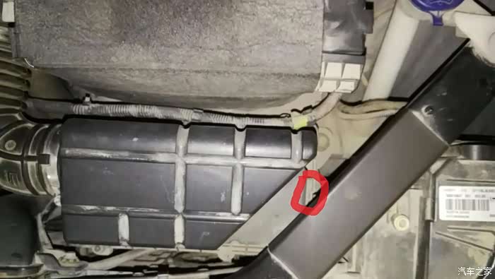 进气管拆掉、四颗螺丝拆掉后,把盖子拿掉,更换空气滤芯,然后装回盖子,装回线束,装回盖子的时候要先装定位孔那里,整个盖子才能装好;结束;