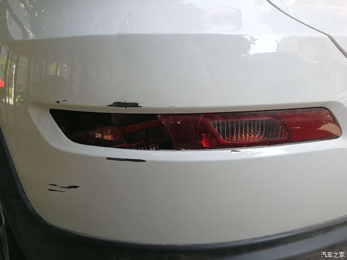 后尾灯和后杠灯破碎,后杠上的漆被剐蹭;还好都是塑料件。