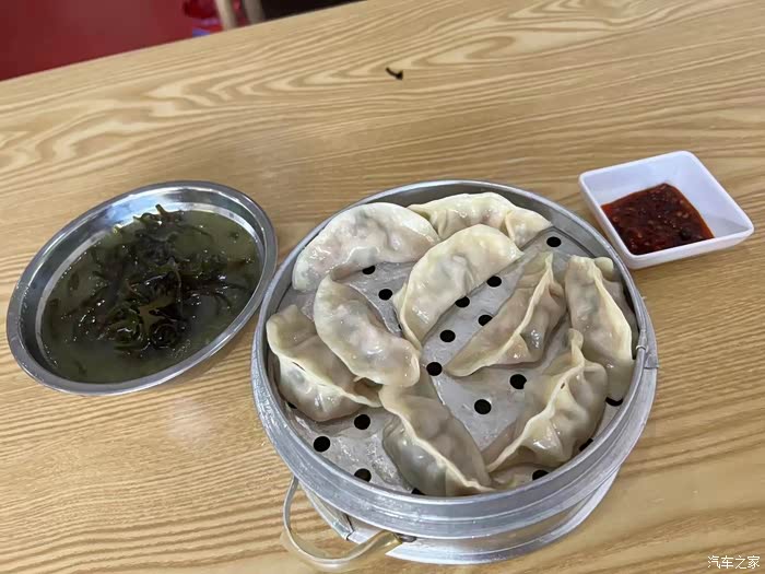 早餐吃的是蒸饺,店家给配了一碗海带汤