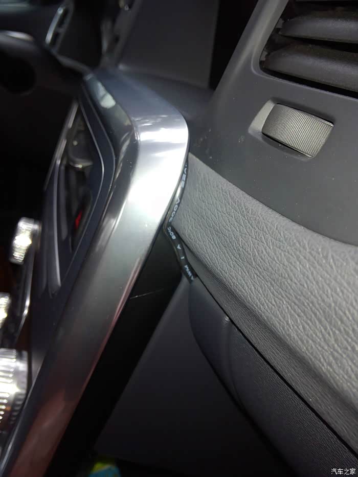 这是驾驶室一侧,中控面板的侧面有缝隙,刚刚好可以把电源线卡稳固,之所以走这里是因为驾驶室一侧的中控面板缝隙比副驾驶更长一些,可以做到更多的线隐蔽