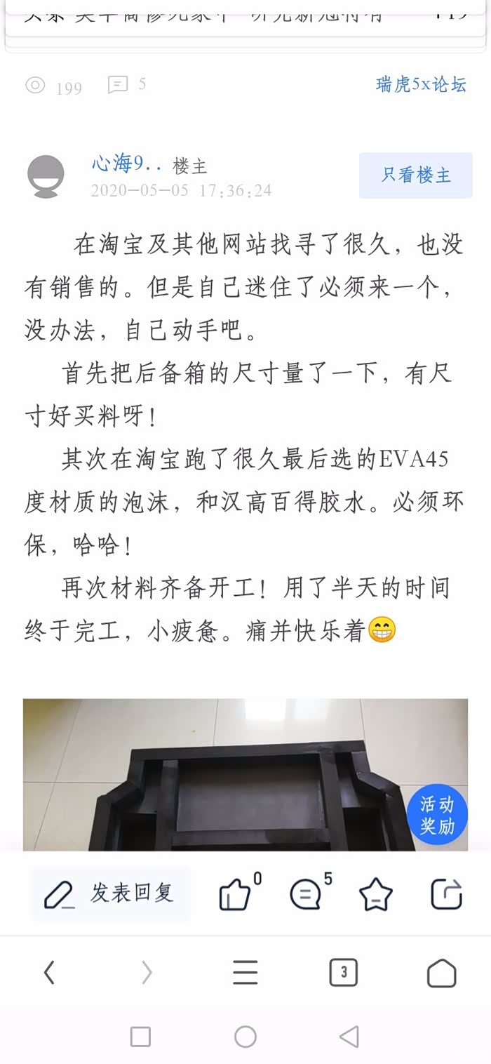 受到车友的启发,我也制作了个珍珠棉后备箱储物盒