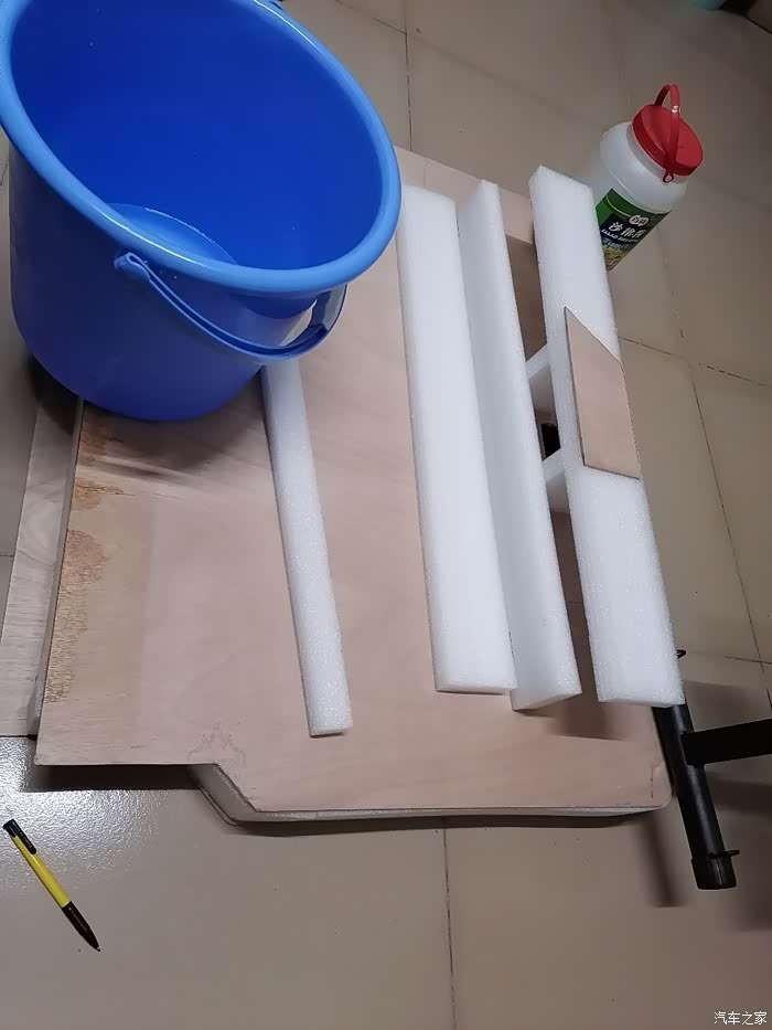 看了“心海”车友制作的盒子心里痒痒的,刚前阵子在公司的仓库看到包装家电的珍珠棉空箱子,立既开工,购买胶合板,珍珠棉胶,现成的珍珠棉,还有美化和减噪的自粘绒布