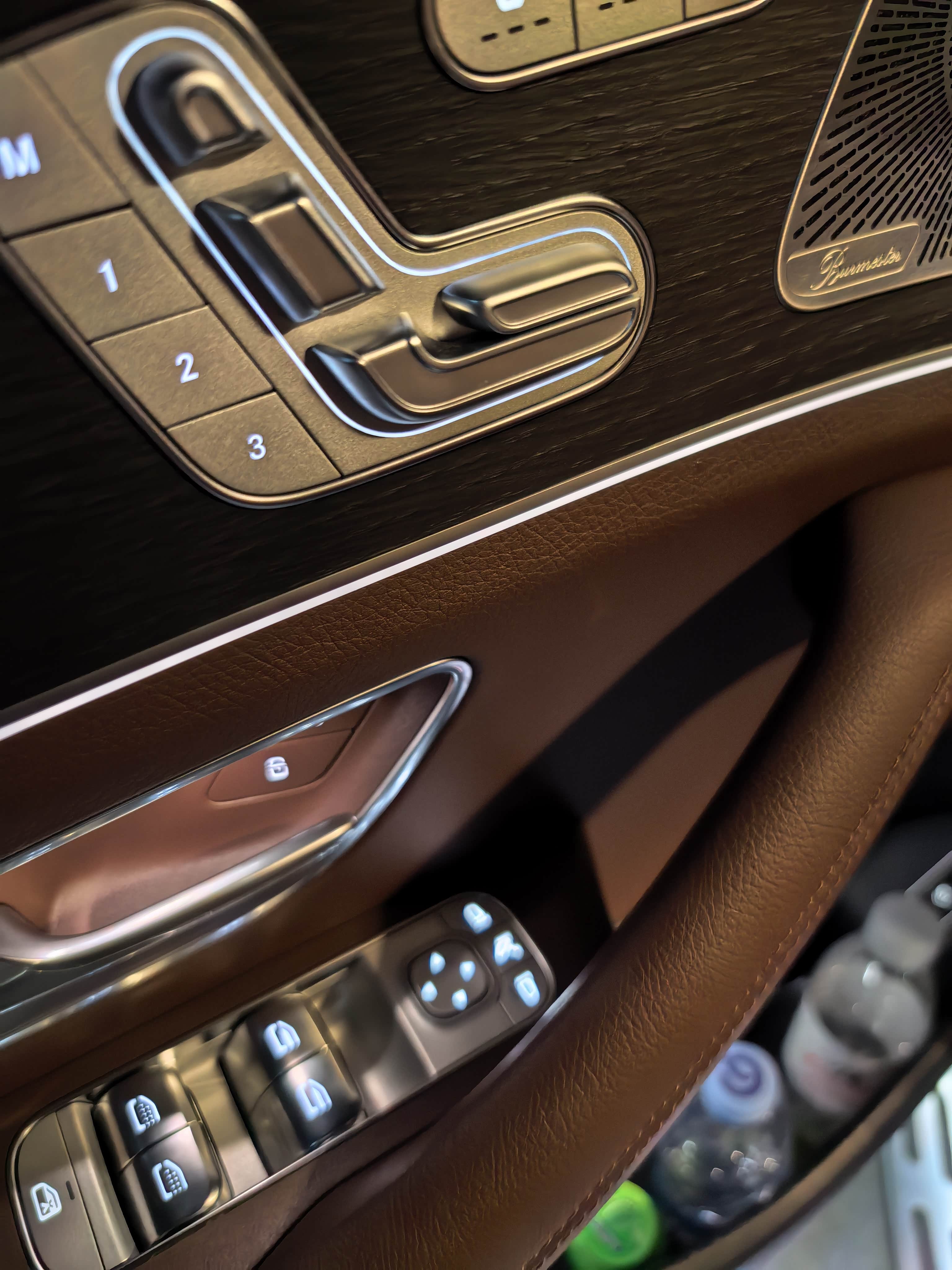 请问下,gle450正负驾驶门板按键周边这圈灯带发光不均匀这种情况正常吗?