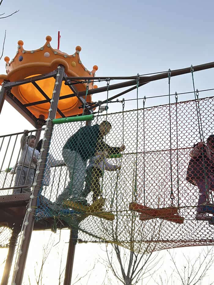 到了香山水岸乐园,果然没让人失望。停车场离入口不远,停好车打开后门,俩娃跟脱缰的小野马似的,拎着小水壶就往里面冲。这乐园我是第三次来了,之所以总惦记着,就是因为它人少清净,不像那些热门游乐场,玩个滑梯都得排半小时队。里面的设施也都是给小朋友设计的,矮矮的塑料滑梯适合三岁的小的,旁边的蹦蹦床能让六岁的大的撒欢,最受欢迎的还是那个彩虹滑道,从上面“嗖”地滑下来,俩娃能来来回回玩十几次,每次滑到底都仰头喊:“妈妈再来一次!”