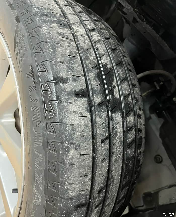 两个前轮的轮胎都已经快抹平了,平时用车量比较大,原厂普利司通的轮胎耐磨性不太高