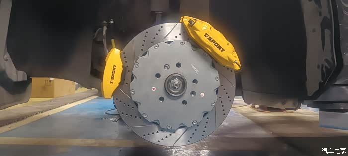 刹车碟采用的是380*28mm 的高碳热处理线孔碟。