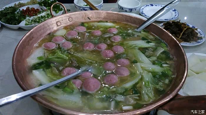 晚上品尝了当地的铜瓢牛杂火锅,很好吃。。。