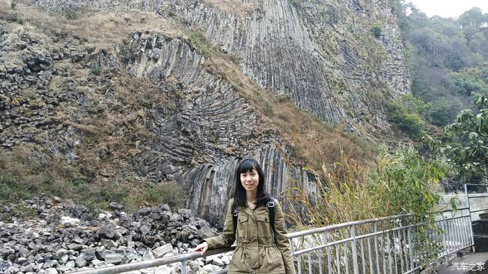 火山景区分为大小空山和黑鱼河景区、柱状节理景区,这个三景区火山公园门票是通用的。从大空山出来后,开车刚出大门就右转,会有柱状节理景区指示牌,到柱状节理景点的游客相对少很多,大概20多分钟就到柱状节理观景台,可以从观景台看对面山上大片的柱状节理,非常壮观,这时就需要我特意准备的微单拉近照节理。这次我是专程来看柱状节理,当然想近距离观看,所以我们继续开到了黑鱼河景区,从黑鱼河旁边山路一直走下去,就可以到达观景台对面那片节理山脚下,单程需要走半小时,当我来到节理柱面前时,还是感到非常震撼,不得不感叹大自然的鬼斧神工。(然而家里人并没有我这么激动,他们也不知道我在激动个啥,哈哈)