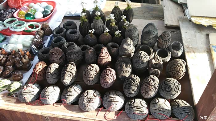 今天是除夕,出发前担心景区春节放假关门,还专门打电话到每个景区咨询,得知都是照常开放,而且春节期间在网上购票还有折扣,于是火山公园和和顺古镇的门票都在网上订好了。酒店离火山国家地质公园大概有27公里,路不错,本以为除夕来景区的人应该不多,结果到景区后才发现出来旅游过节的游客还真不少,景区门外有很多卖火山石做的工艺品,很有特色。