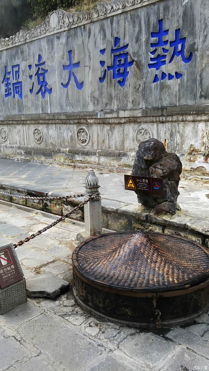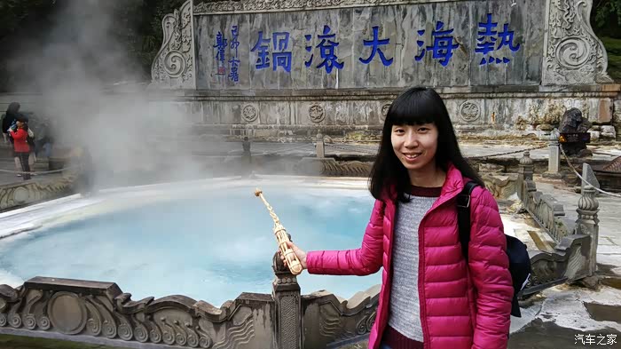 进入景区后看到的第一个景点就非常壮观,叫蛤蟆嘴,山上到处都在冒热气,喷着滚烫的温泉,空气中充满了浓烈的硫磺味。一路上都有温泉景点,都大同小异,也有泡温泉的地方,但最让人期待的非热海大滚锅莫属了,大滚锅在山顶,也是最后一个景点,爬了好一阵才到,当看到大滚锅时,所有的疲惫都没有了,太震憾了,池子里浅蓝色的温泉水一直在翻滚,热气和硫磺味扑面而来,旁边很多人都拿着自己买的鸡蛋争先恐后的去蒸,很快我也加入蒸鸡蛋的队伍中去了。