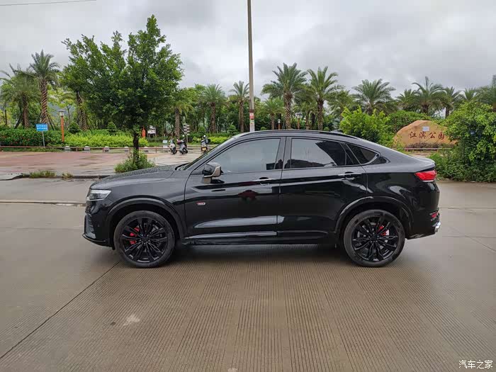 2、其次就是颜值,星越家族式水滴涟漪前脸,比普通的更加宽扁,红色线圈点缀,看着给人感觉更加运动,搭上锋箭日行灯+ADB矩阵大灯,就像一双大眼睛,看着粽粽有神,当初就是灰尘喜欢这大灯,超预算也要上顶配,星越溜背造型,酷似宝马X6,车身整体看着线条流畅,溜背自然美观,黄金夹角45度,风阻0.0325!整个车身看着完美,让我越看越喜欢哈!现在生活离不开星越了!