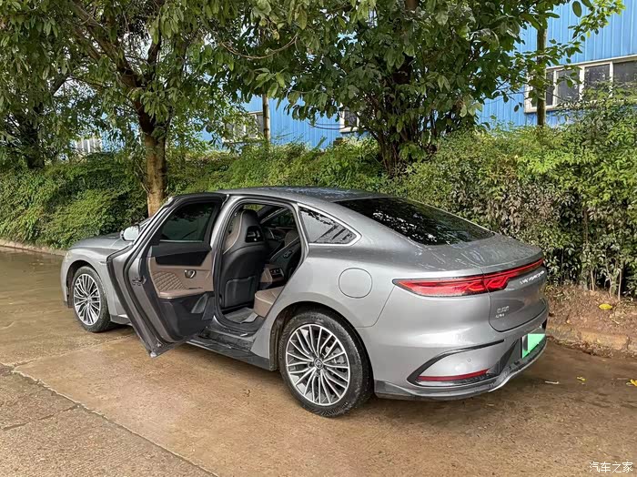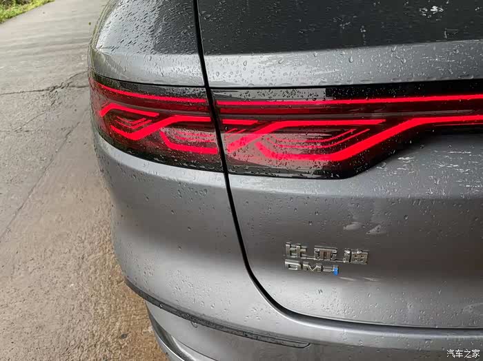 被雨淋湿后的汉DMI,车就像水洗过一样,往日里的污渍,都随着雨水的冲刷流逝了,加上这个外观设计的古典里面带有一点运动感,刚刚路过那个小孩都回头看了好几眼,说明确实很好看,哈哈哈
