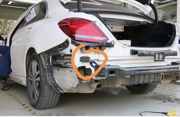 他这个只有一个雷达,直接帖在了保险杠内侧中间。