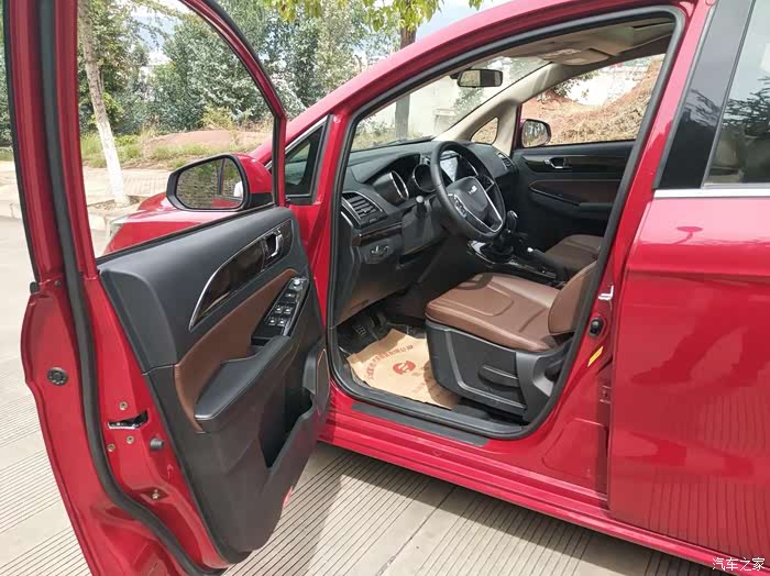 打开车门,是棕色和黑色相间内饰。我对车子外观和空间都很满意。就是内饰,稍微有点差强人意,毕竟一分钱一分货,这个价位,我觉得还是不要太贪心,肯定不能面面俱到。内饰就是稍显廉价,用料这些感觉不是特别好。好在座椅舒适度还行,我父母坐过都觉得还挺舒服的。