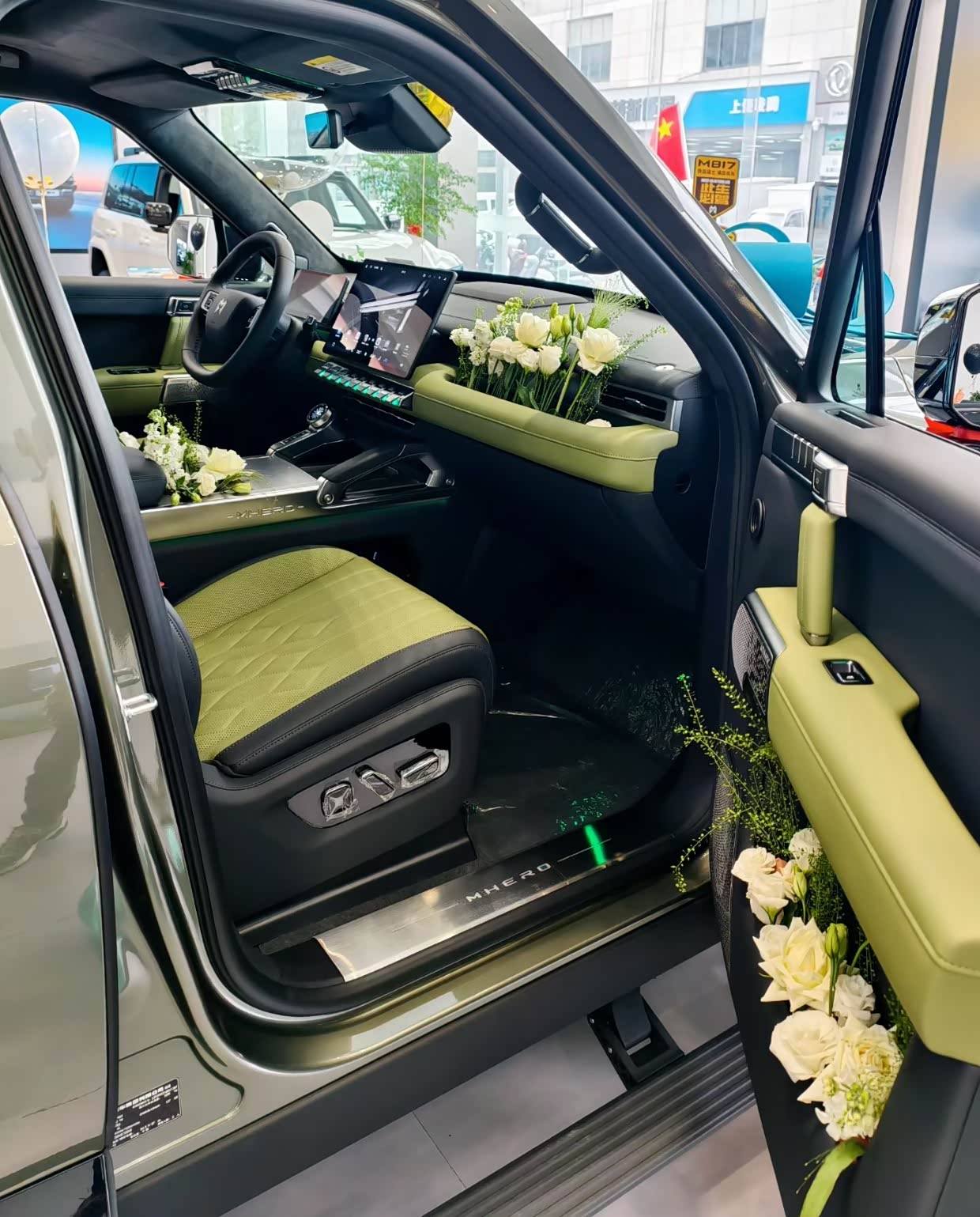 由于本地没有4s店,一直没见过实车,也没试驾过(其实上边说过的那些车都没试驾过)。期间有注册了猛士汽车app,也进入过厂家直播间,隔壁市4s店销售小哥可能就是从上边的两个渠道搞到的联系方式加了我微信,并驱车200公里送了车过来试驾。试驾路线是我自己选的,就简单体验了一下,路程短其实也体验不出太多东西。恰逢江西省补停摆,一直在也在纠结要不要等等,但没出息,做梦都在提车,也就不再等了。先是在pro和max之间反复横跳,怕max版本的空悬时间久了出问题,又丢不下max的后轮转向和副驾按摩,因为车子老婆也要开,后轮转向简直是神器。奔着人生短短三万天,开心一天是一天的想法,几年后的事情干嘛要去操心。所以就在9月最后一天下定max版本,下定的时候是知道会有长续航版本的,但多几十公里续航意义不大,就直接下定max版本。颜色绿色,内饰自然也是绿色,另外选装了外挂备胎和拖挂,至于外挂备胎我个人觉得是越野车的灵魂,天王老子来了也要选!拖挂是先选上,省得后期后悔,就是有点肉疼。
