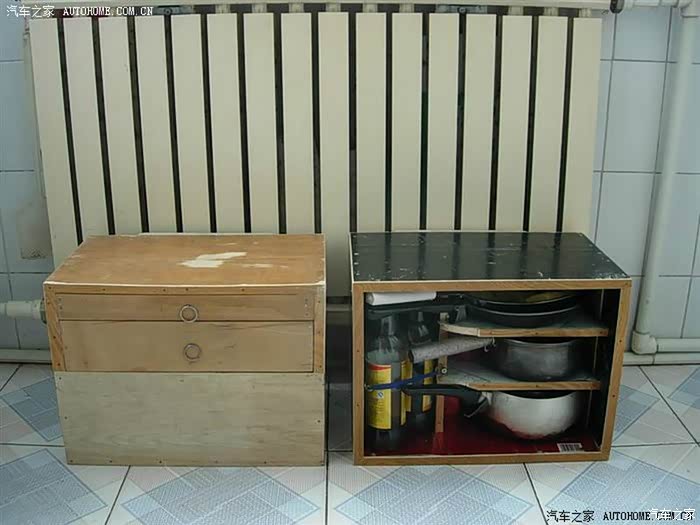 把这两个木箱改一下,这样所有的锅和油盐酱醋的瓶子都有地方放了。