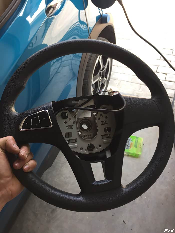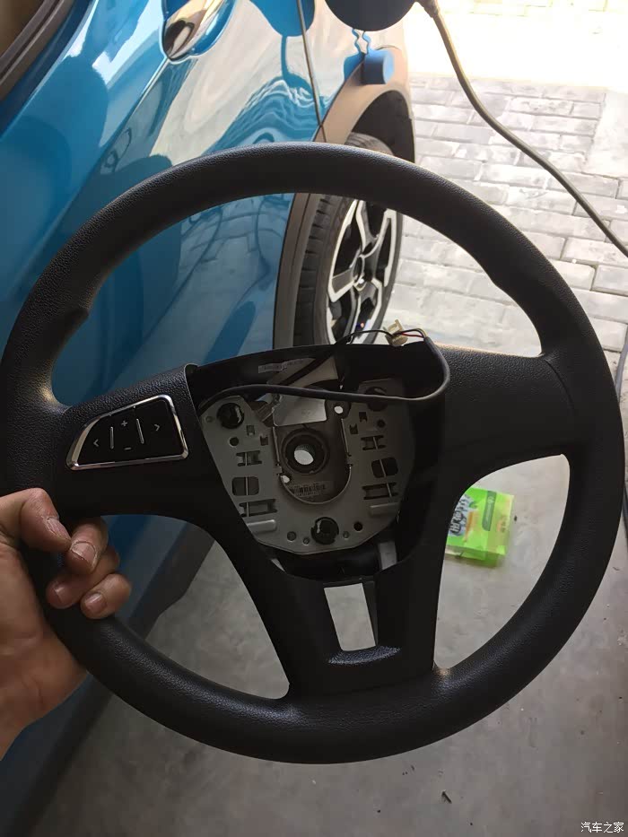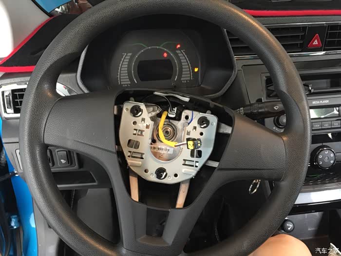 先把方向盘气囊拆了,下面单边一个空,挫一下就可以了