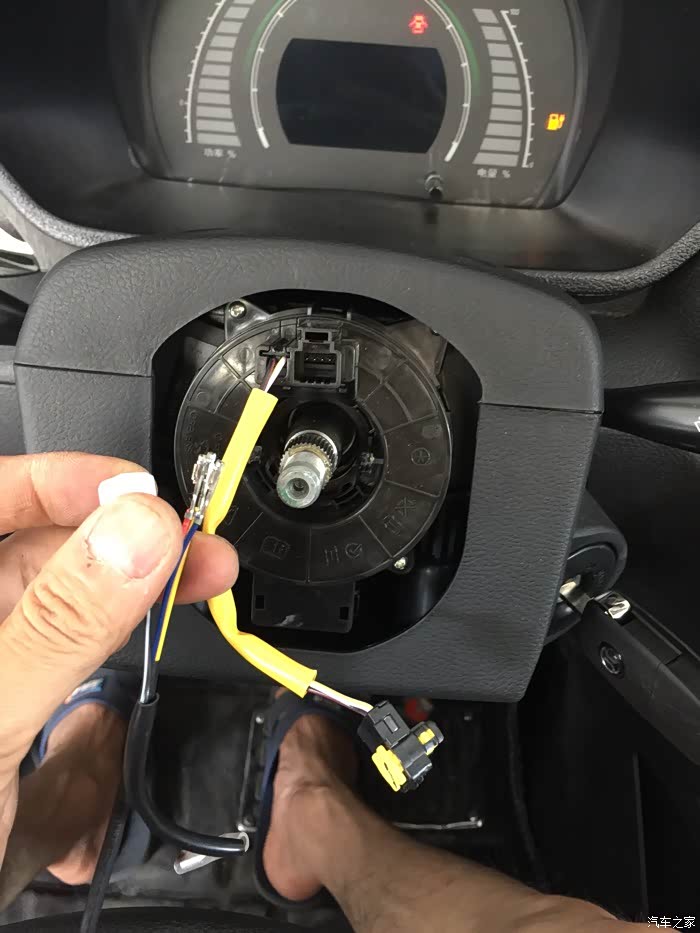 气囊拿下,黄色的线有卡子的