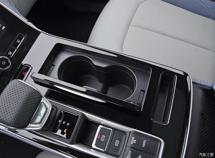 档把的设计就像游艇上的档把一样,上面还有皮革的包裹,高级感很强,同时还有两个杯架和一个卡槽,实用性也很不错。