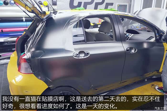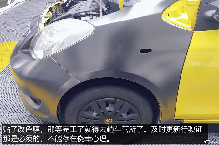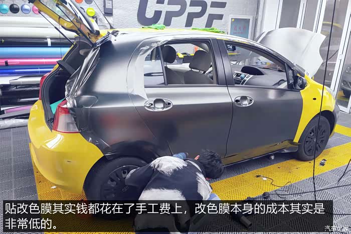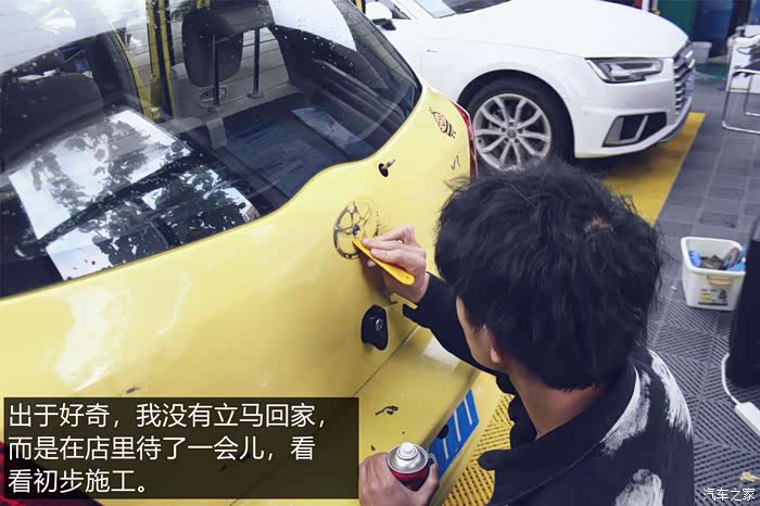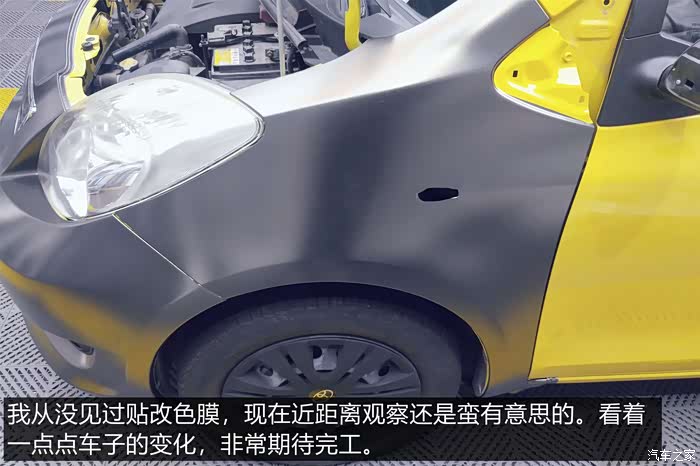 在整车喷漆和贴改色膜两个方案之间,老婆最终选择了后者。