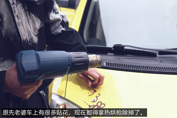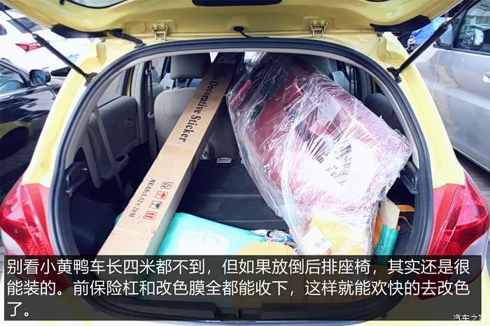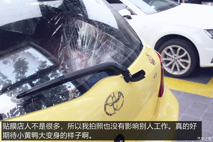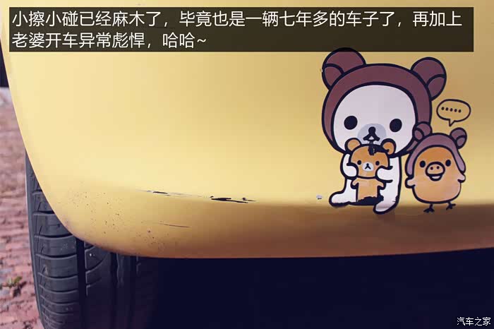 老婆还嫌小黄鸭不够可爱,车身上海贴了不少装饰贴画,就为了彰显它的可爱。