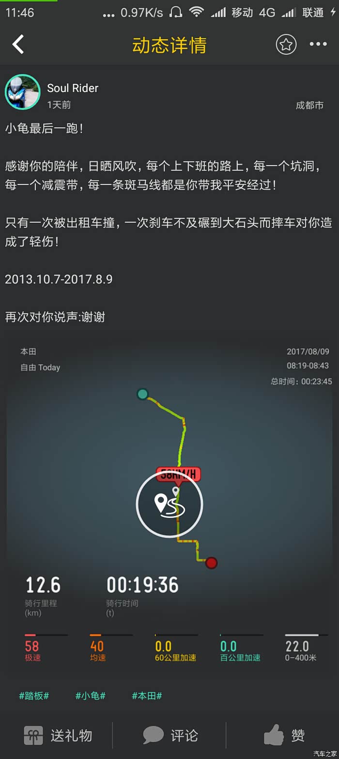 最后,用摩托帮的截图来纪念我的小龟。希望新主人对你好。也再次感谢你陪伴我的日日夜夜。