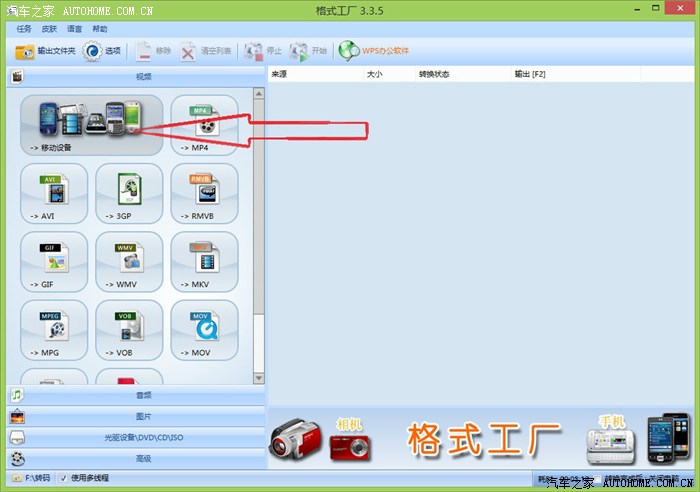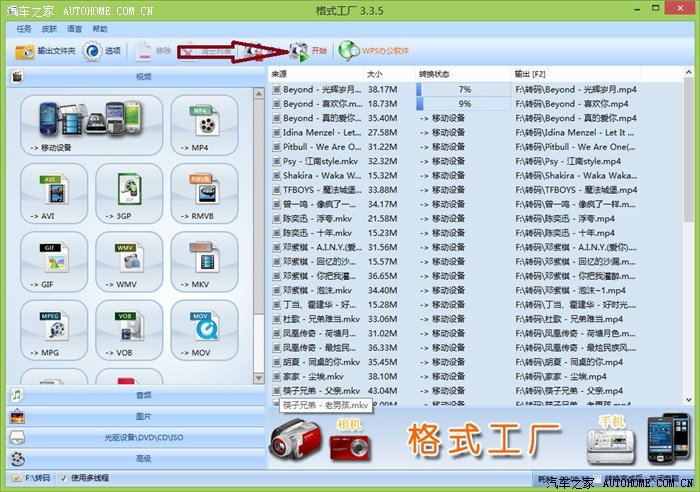提车已有20多天,中控屏播放MP3音乐没有问题,但是在播放视频的时候却总是提示视频格式不支持,说明是可以播放的,打了400和4S的售后他们也搞不清楚究竟支持什么格式的视频文件,无耐之下只好自己动手,一种格式一种格式试播了,功夫不负有心人,终于让我找到了支持的视频格式。由于一般的视频文件都需要转码,那我就直接上图,顺带做个转码的教程。转换工具是(格式工厂)百度搜索下载即可。