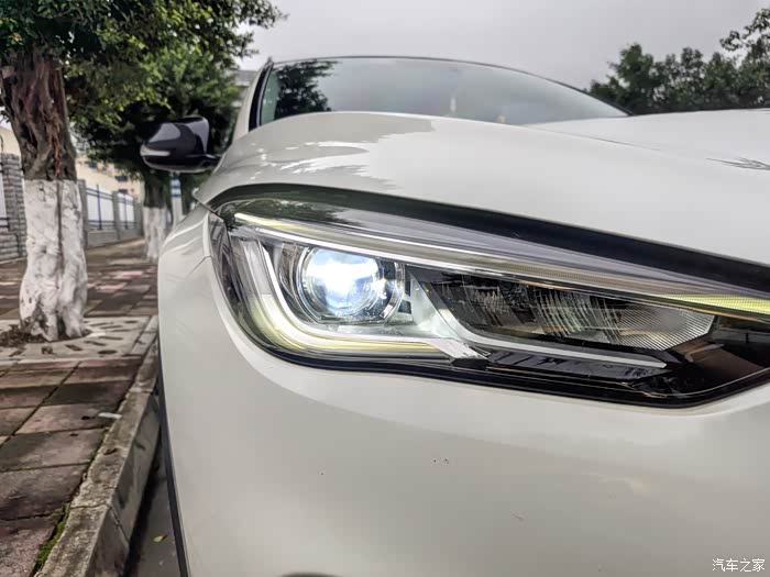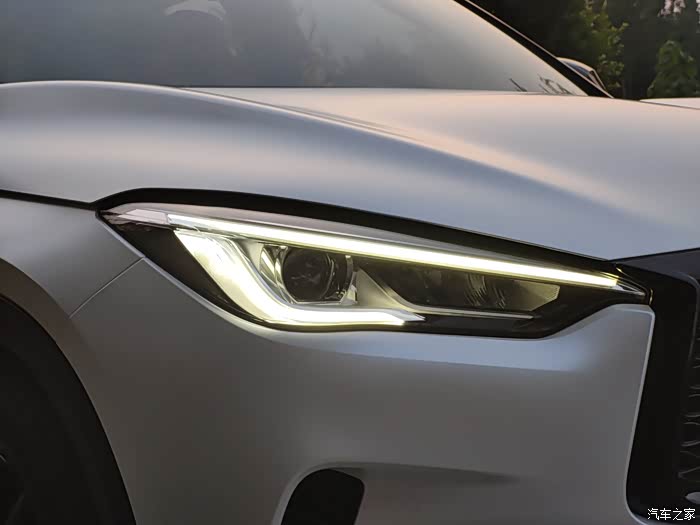 英菲尼迪qx50配备的是led大灯和led日间行车灯,远光和近光是分体式,高配的车型则是矩阵式,照明性是非常不错的,晚上大灯能均匀的在路上铺开。大灯大灯控制区域在主驾左膝前侧,有off关闭档位,auto档位,示宽灯档位和近光灯档位。在auto档位上汽车的光线传感器会自动判断亮度的变化来控制点亮或者关闭我们的大灯,在行驶过程中,当光线变暗时大灯会自动亮起,当光线变亮是会自动熄灭。汽车前面的转向灯也集成在日间行车灯里,我们可以通过拨动方向盘左后方的拨杆来控制转向灯。