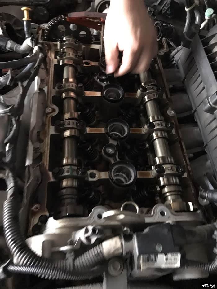 还算干净 但当一切装完之后 问题来了 打着火 风扇狂转 发动机抖动 这种情况以前也碰到过 去4s读了故障码 说是缺缸 节气门也清洗了 之后每年得来那么几次 修车的师傅说应该是节气门的事 判断?积碳过多造成的 然后开始拆发动机 卧槽 噩梦开始了 带t的小无 ?真难拆 那装配真是反人类 用了半天才把缸盖拿下来 啥都不说了上图