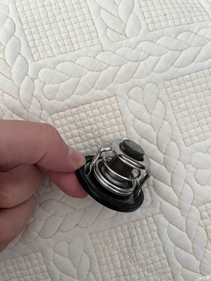 旧的拆下:很新,不过细心观察,凉车状态下拆下的应该是关闭状态,可是这个是关闭不严。