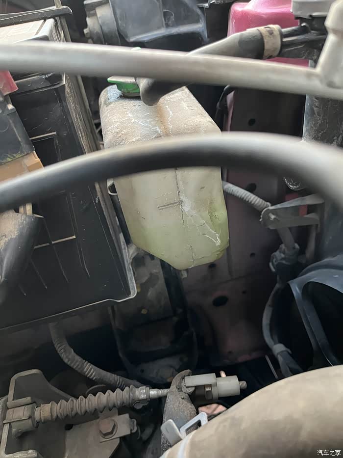在老妈家的楼下,凉车时再补防冻液,又补进去一些,过几天有空再打开看看,问题应该不大。